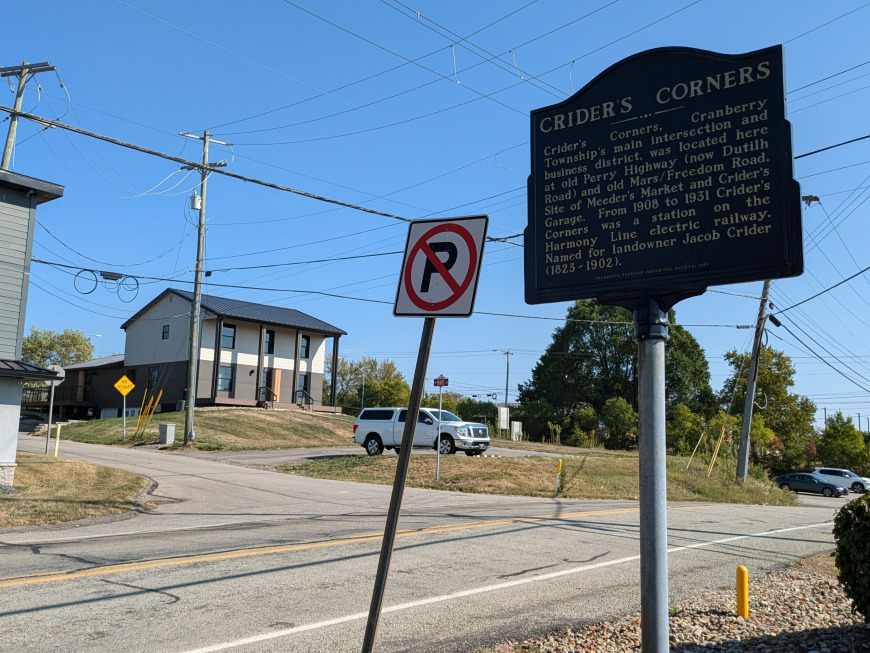 Cranberry Township's main intersection and business district, was located here at Old Perry Highway (now Dutilh Road) and Old Mars/Freedom Road.