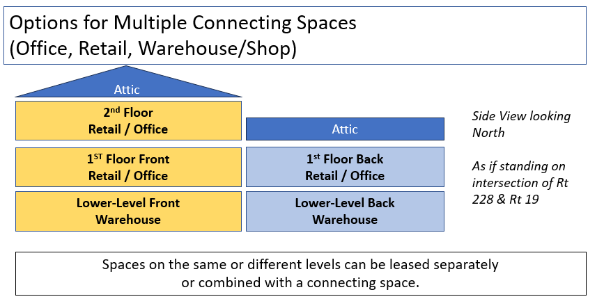 > Our spaces offer flexibility of selecting an one or several adjoining spaces to meet your business needs for retail, office, warehousing and deliveries.