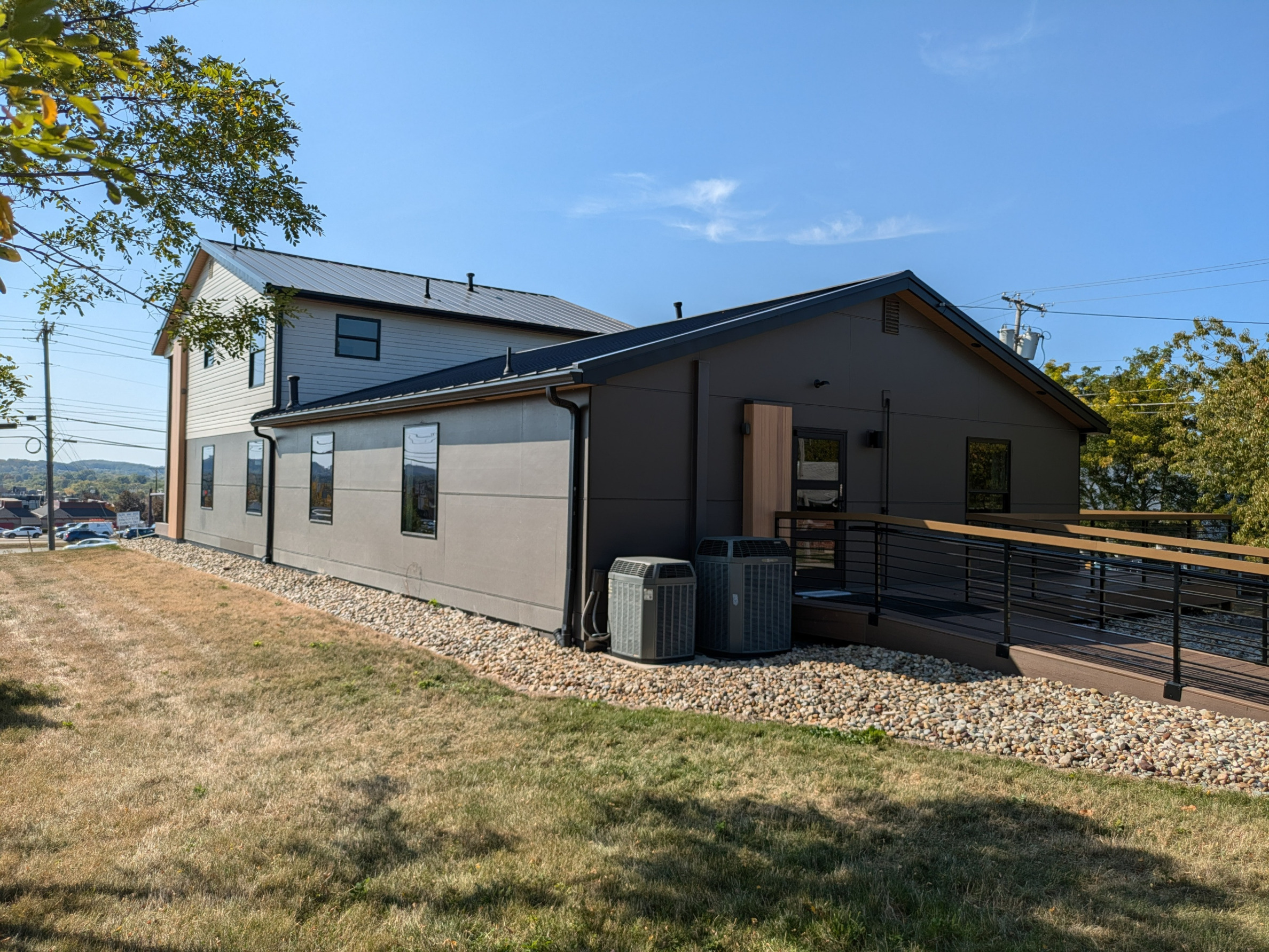 > 8 surface parking spaces in back with ADA space. And accessability to the entire first floor and lower levels.